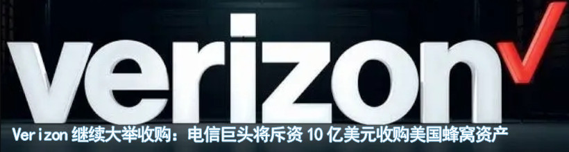 Verizon继续大举收购:电信巨头将斥资10亿美元收购美国蜂窝资产