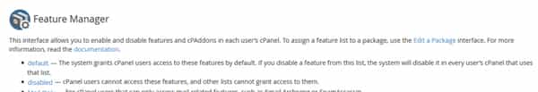 有关可以为功能列表启用的每个功能的描述,建议使用它 CPANEL的文件在这里 它将包含列出每个功能的简要说明。